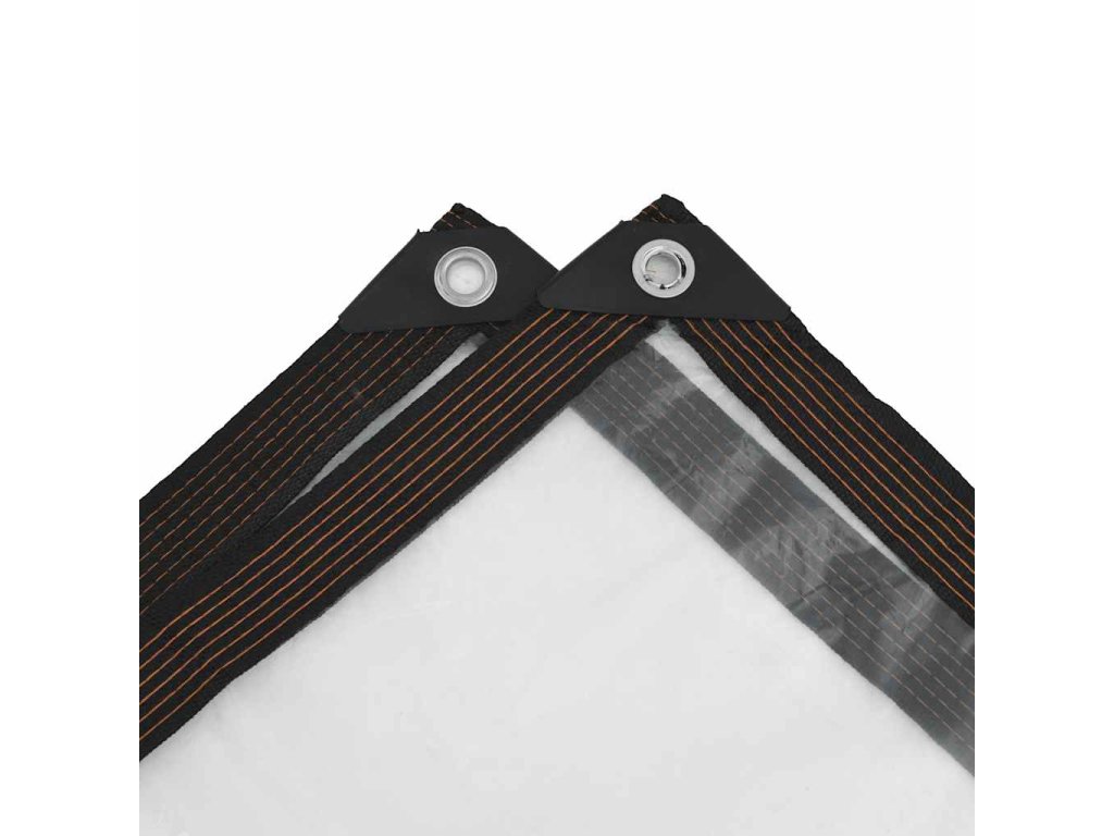 - Praktická očka: Průhledná plachta je ve čtyřech rozích a na okrajích opatřena oky pro snadné upevnění. Vzdálenost mezi jednotlivými oky je přibližně 100 cm.