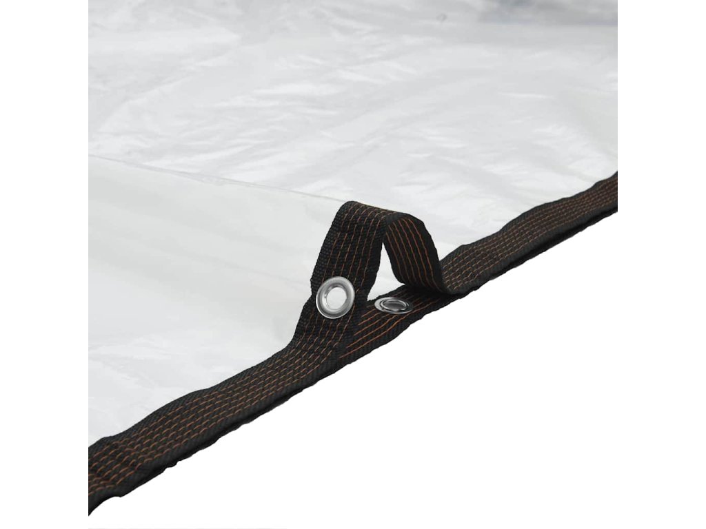- Odolný a voděodolný materiál: Průhledná plachta je vyrobena z polyetylenu a okraje mají černou stuhu a šestiřadé strojové stehy k fixaci, díky čemuž je voděodolná, trvanlivá a má dlouhou životnost. S průhledností cca 70% můžete kontrolovat zakrytý předmět, aniž byste museli sundávat plachtu.