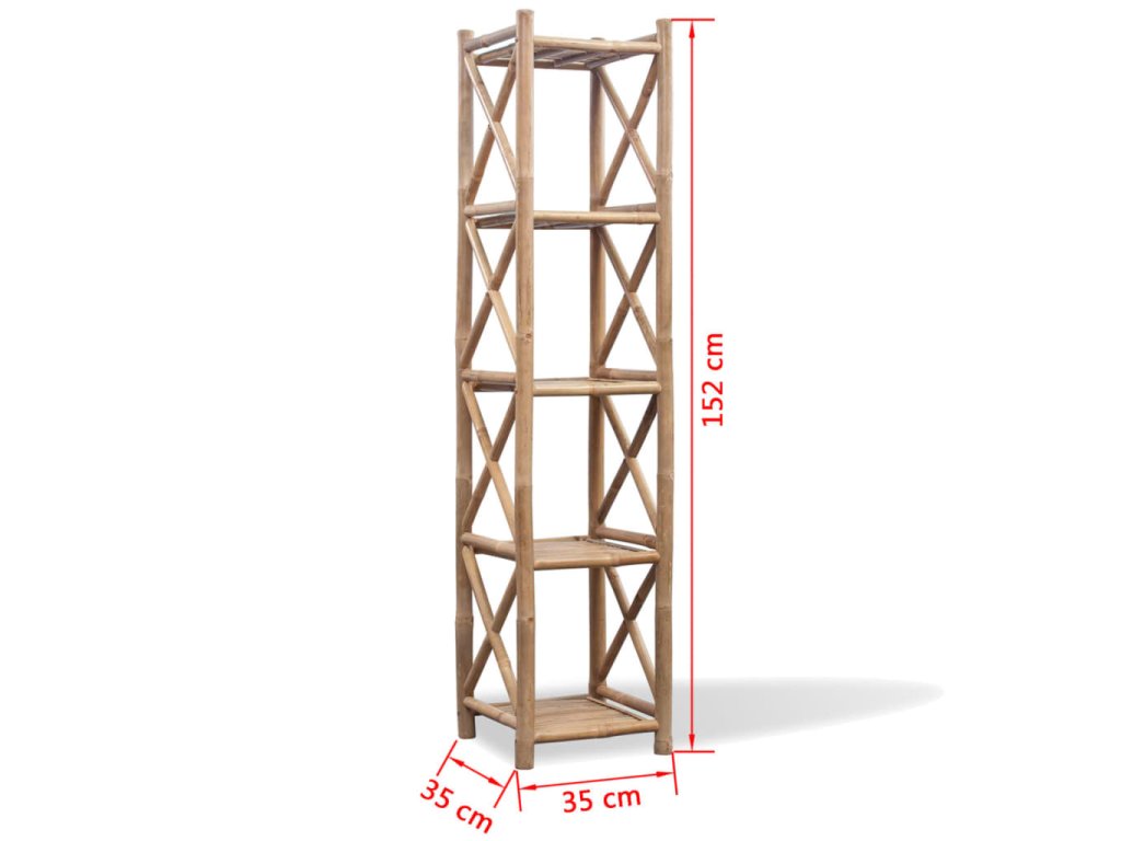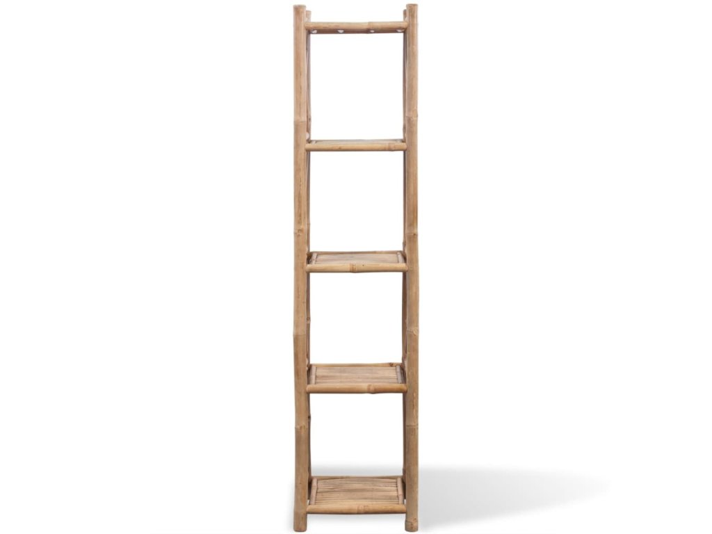 Tento bambusový regál s 5 poličkami může být používán v koupelně jako police na ručníky, v obývacím pokoji jako knihovna, nebo na verandě k vystavování hrnkových rostlin. Díky svému kompaktnímu a jednoduchému designu je ideální do malých prostor. Přirozená barva bambusu vnese do vašeho zařízení tropické kouzlo.