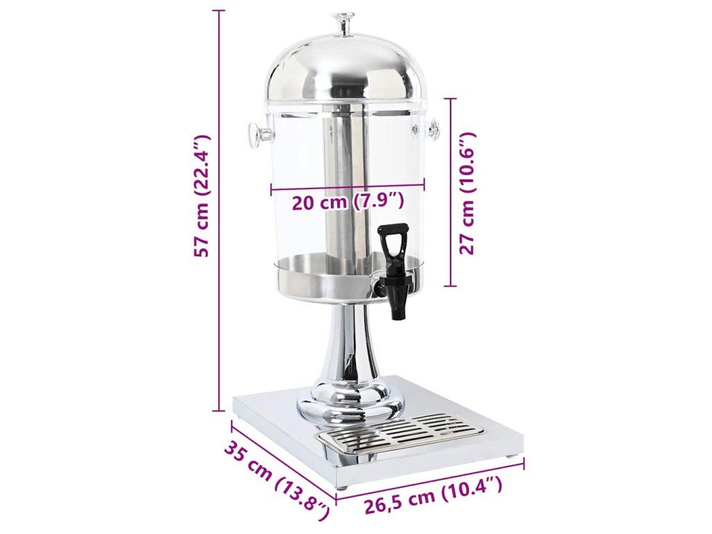 Dávkovač na džus má kapacitu 8 litrů. Zásobník na nápoje s kohoutkem je vhodný pro sklenice o maximální výšce 15,5 cm. Centrální válec může být naplněn ledovými kostkami pro ochlazení nápojů. Odkapávací vanička shromažďuje veškerý rozlitý džus a dá se snadno vyjmout a vyprázdnit.