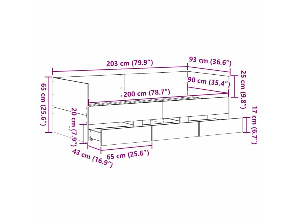 - Velikost matrace: Jednolůžko (90 cm x 200 cm nebo 35" x 79")