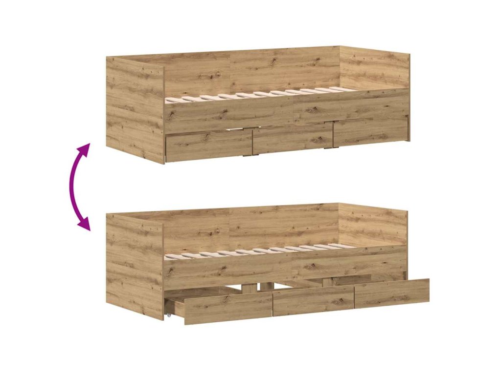 - Integrované úložné prostory: Pohovka má vestavěné zásuvky, které slouží jako praktické úložné řešení. Zásuvky jsou z odolného kompozitního dřeva a skvěle se hodí na ložní prádlo nebo osobní věci, čímž přispívají k pořádku v místnosti.