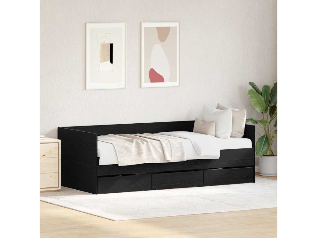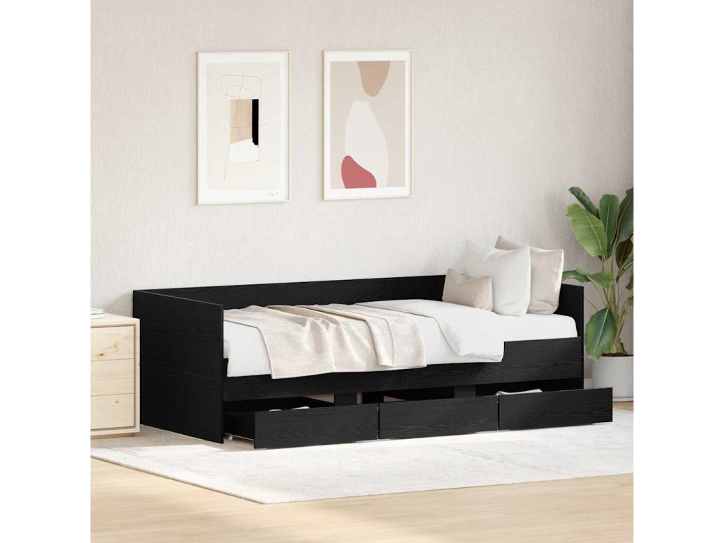 - Integrované úložné prostory: Pohovka má vestavěné zásuvky, které slouží jako praktické úložné řešení. Zásuvky jsou z odolného kompozitního dřeva a skvěle se hodí na ložní prádlo nebo osobní věci, čímž přispívají k pořádku v místnosti.