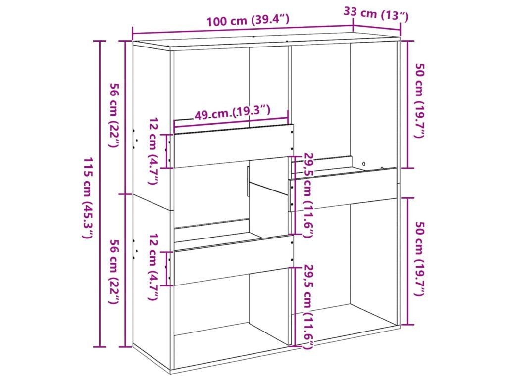 - Rozměry: 100 x 33 x 115 cm (Š x H x V)