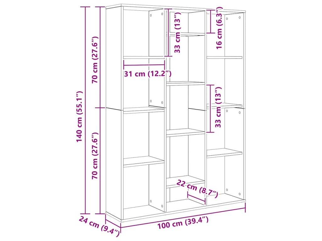 Dělicí stěna je vyrobená z prvotřídního kompozitního dřeva, které je zárukou odolnosti, pevnosti a dlouhé životnosti. Zástěna k rozdělení pokoje je designovaná se 13 přihrádkami různých velikostí a nabízí spoustu úložného a výstavního prostoru. Tyto všestranné police můžete v bydlení uplatnit nejen k rozdělení pokoje, ale také jako knihovnu, do které snadno zorganizujete vaše časopisy, knihy, DVD nosiče, multimediální zařízení a různé dekorace na dosah ruky.