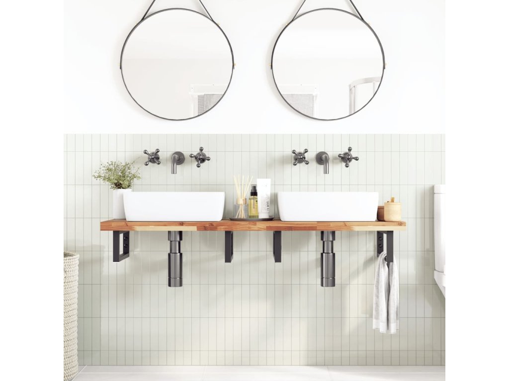 - Robustní s dlouhou životností: Díky kombinaci ocelové konstrukce a desky z masivního akáciového dřeva je tato deska na umyvadlo robustní, stabilní a má dlouhou životnost.