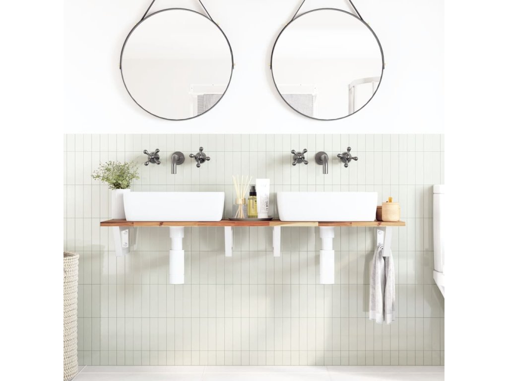 - Robustní s dlouhou životností: Díky kombinaci ocelové konstrukce a desky z masivního akáciového dřeva je tato deska na umyvadlo robustní, stabilní a má dlouhou životnost.
