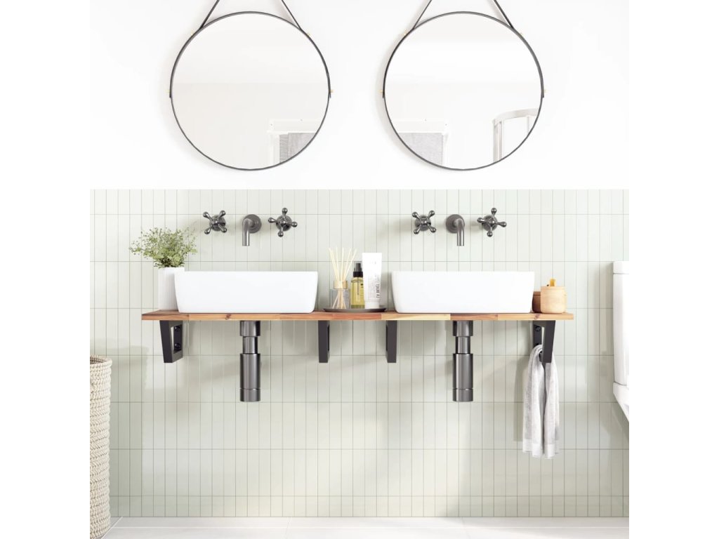 - Robustní s dlouhou životností: Díky kombinaci ocelové konstrukce a desky z masivního akáciového dřeva je tato deska na umyvadlo robustní, stabilní a má dlouhou životnost.