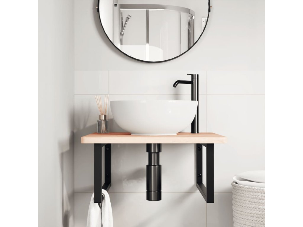 - Robustní s dlouhou životností: Díky kombinaci ocelové konstrukce a desky z masivního bukového dřeva je tato deska na umyvadlo robustní, stabilní a má dlouhou životnost.