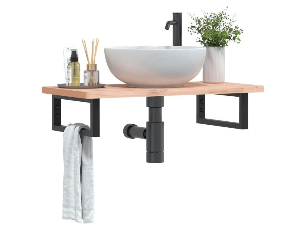 - Robustní s dlouhou životností: Díky kombinaci ocelové konstrukce a desky z masivního bukového dřeva je tato deska na umyvadlo robustní, stabilní a má dlouhou životnost.
