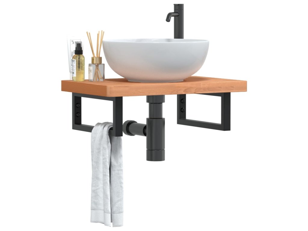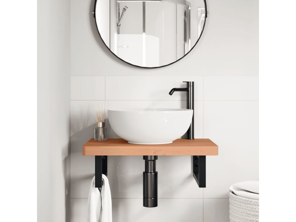 - Robustní s dlouhou životností: Díky kombinaci ocelové konstrukce a desky z masivního bukového dřeva je tato deska na umyvadlo robustní, stabilní a má dlouhou životnost.