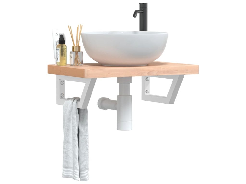 - Robustní s dlouhou životností: Díky kombinaci ocelové konstrukce a desky z masivního bukového dřeva je tato deska na umyvadlo robustní, stabilní a má dlouhou životnost.