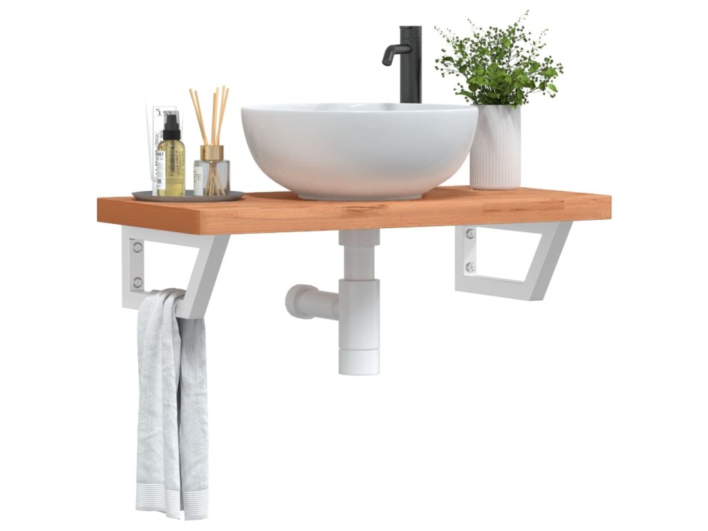 - Robustní s dlouhou životností: Díky kombinaci ocelové konstrukce a desky z masivního bukového dřeva je tato deska na umyvadlo robustní, stabilní a má dlouhou životnost.