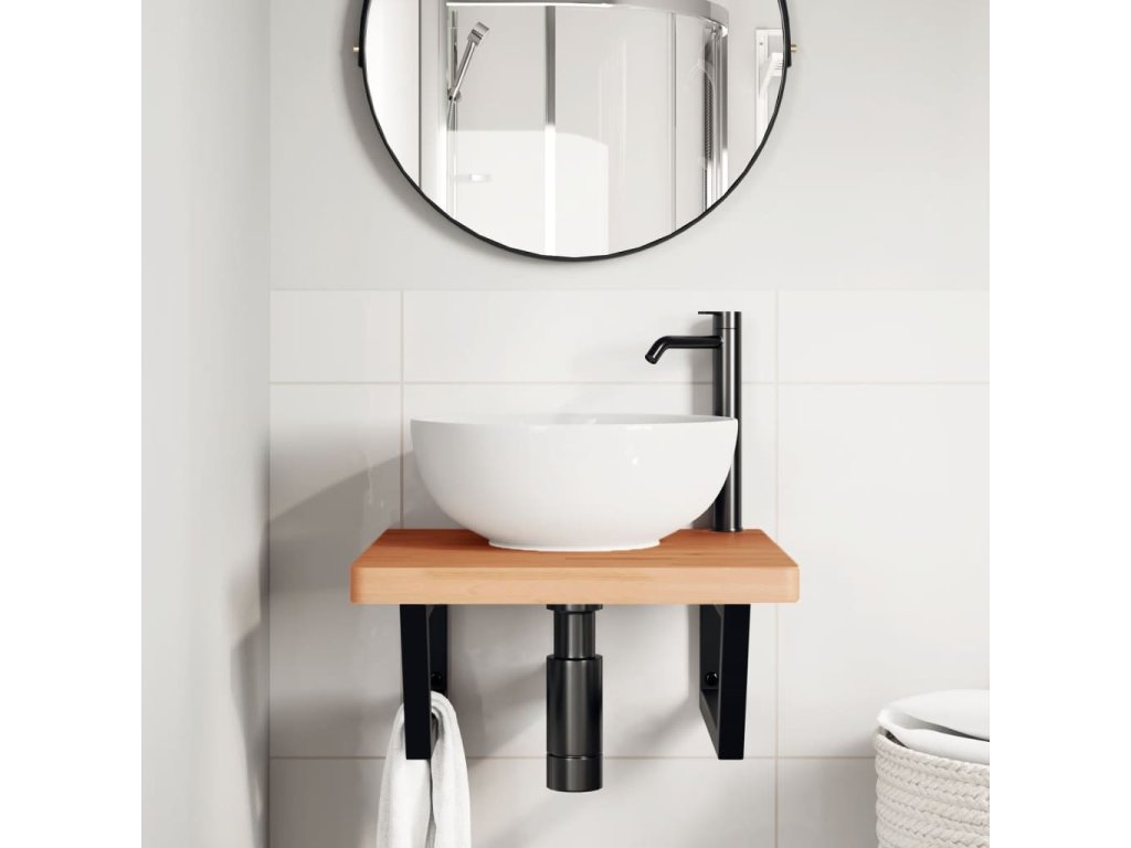 - Robustní s dlouhou životností: Díky kombinaci ocelové konstrukce a desky z masivního bukového dřeva je tato deska na umyvadlo robustní, stabilní a má dlouhou životnost.