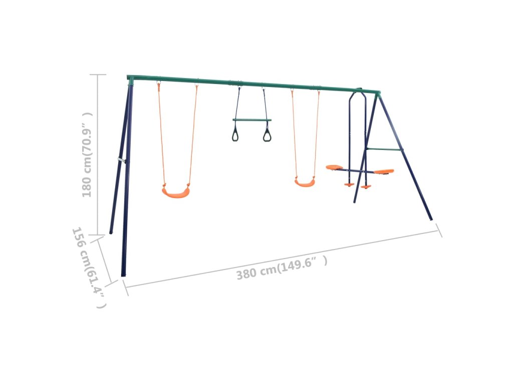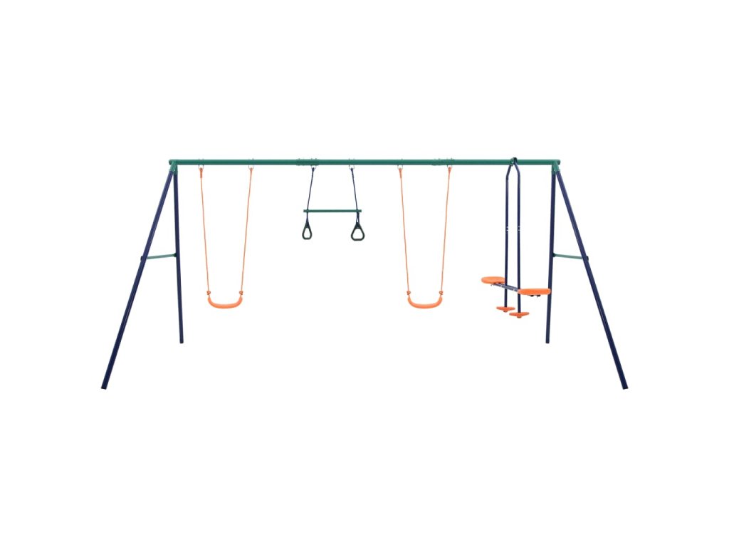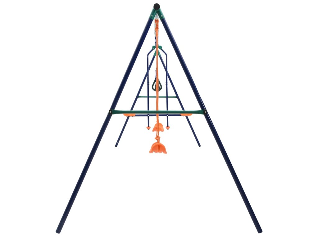 Sada má pevný rám do tvaru písmene A a je vybavená 2 houpačkami pro jedno dítě, hrazdičkou s dvěma kruhy a 2místnou houpačkou, na které se mohou houpat dvě děti naproti sobě. Ocelová konstrukce a plastová sedátka houpačky jsou velmi odolné a dobře vzdorují povětrnostním vlivům. Sestavení sady je snadné. Houpačky jsou připevněné k rámu pomocí pevných držáků, šroubů, háků a provazů.