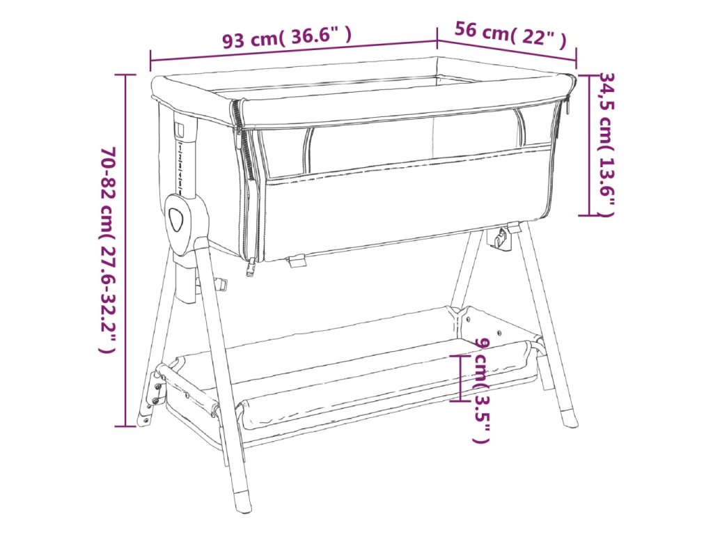 - Úložný prostor: Úložný koš pod dětskou postýlkou umožňuje snadné uspořádání věcí.