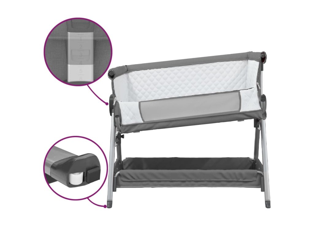 - Nastavitelná výška: Dětská postýlka se 6 nastavitelnými úrovněmi výšky je ideální pro víceúčelové použití. Můžete ji mít u postele, v blízkosti pohovky a na dalších místech. Můžete si nastavit vhodnou výšku podle svých potřeb.