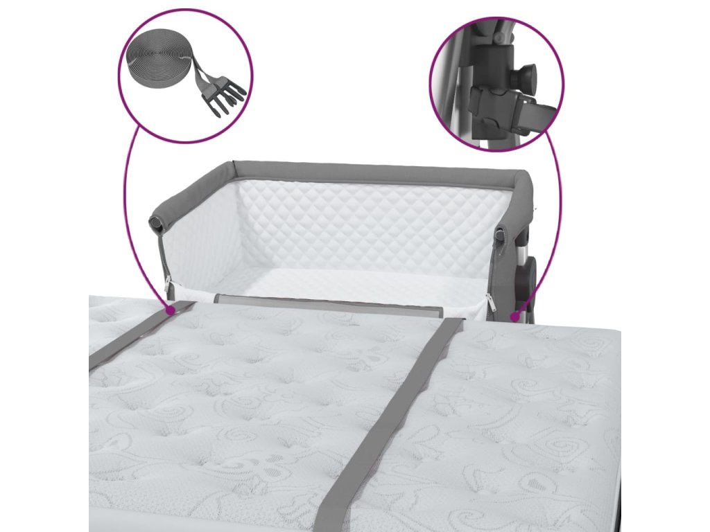 - Široké použití: Tuto dětskou postýlku lze použít jako samostatně stojící postýlku, kde může vaše dítě bezpečně spát, nebo ji můžete také připojit k rodičovské posteli pro zajištění lepší péče o dítě.