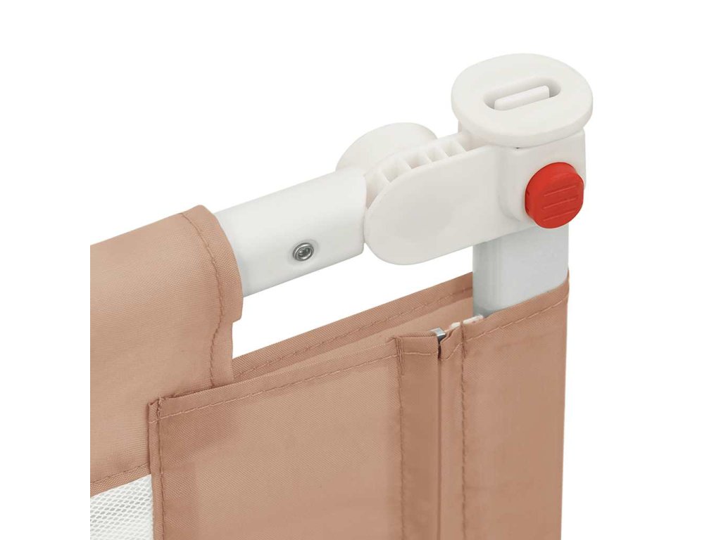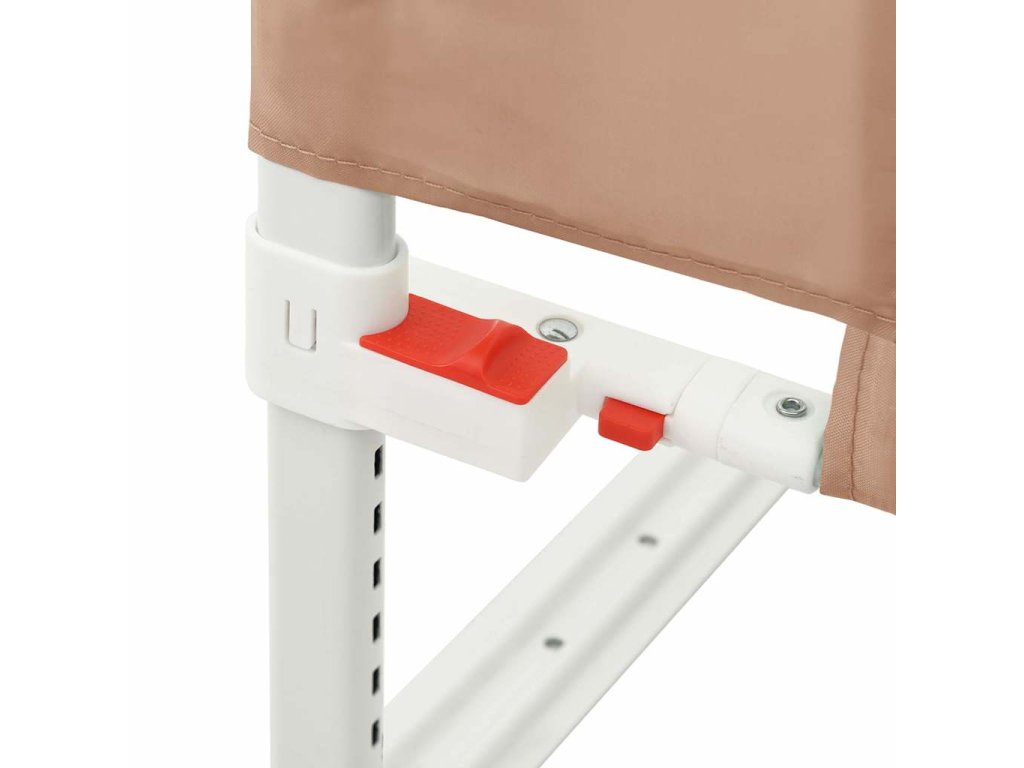 Zábrana na postel je vyrobena z omyvatelné polyesterové tkaniny a lehké kovové trubky, je tedy pevná, odolná a snadno se čistí. Na každé straně je vybavena knoflíkem, takže ji můžete snadno sklopit. Výšku lze navíc libovolně nastavit do nejbezpečnější polohy. Upozornění: Tato zábrana na postel je vhodná pro děti ve věku od 18 měsíců do 5 let. Lze ji použít pro většinu postelí s matrací o tloušťce 3–25 cm s výjimkou palandy, dětské postýlky, vodní postele nebo postele s nafukovací matrací.