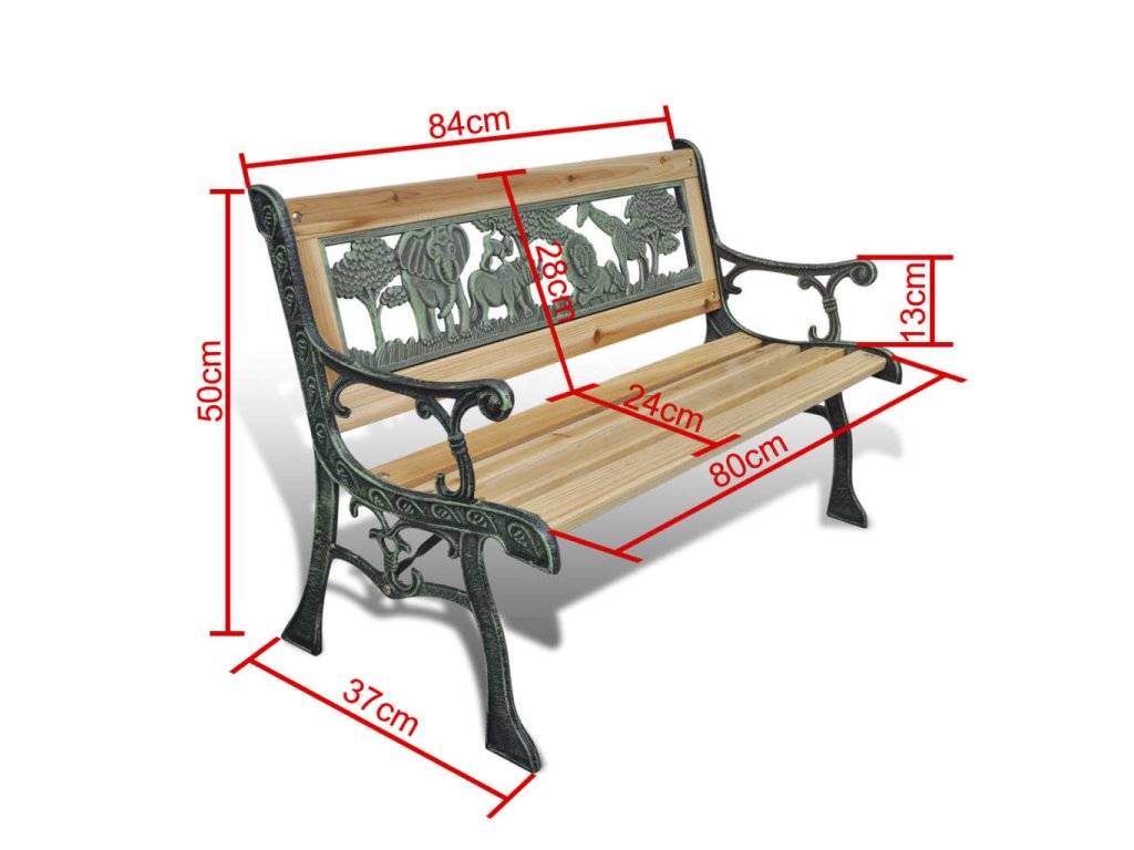 Tato domácí zahradní lavička je vzhledem ke svým rozměrům vhodná pro vaše děti. Ty si určitě budou užívat čas strávený na této roztomilé lavičce ve společnosti zvířátek a rostlin zobrazených na opěradle.