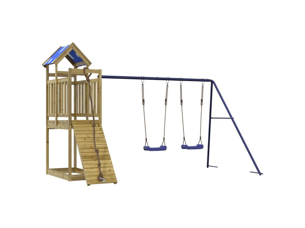 - Stabilní dřevěný rám: Dřevěný rám zahradní hrací věže zajišťuje mimořádnou pevnost a stabilitu. Nohy dětské houpačky ve tvaru písmene A navíc zajišťují potřebnou rovnováhu.