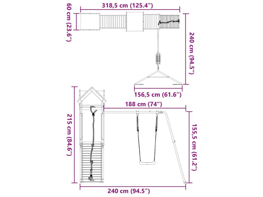 - Rozměry (malá hrací věž): 52,5 x 46,5 x 208 cm(D x Š x V)