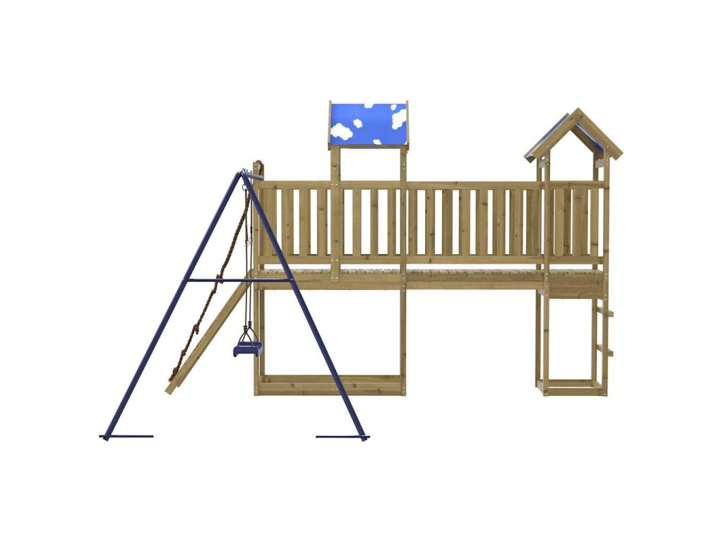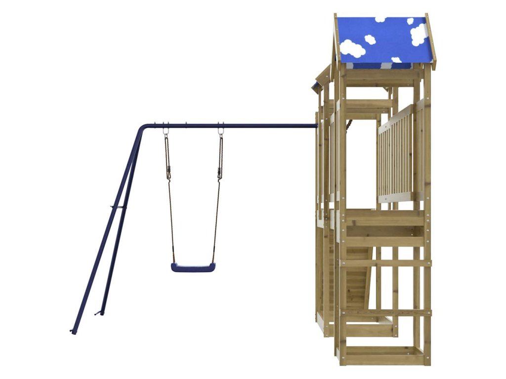 - Promyšlený design: Dřevěné zábradlí je navrženo tak, aby zajistilo bezpečnost dětí při jejich veselých hrách. Střecha s mráčky navíc poskytuje stín pro vaše děti v horkých letních dnech.