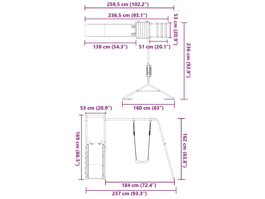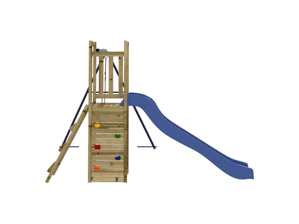 - Multifunkční herní centrum: Věž má plošinu ve výšce 90 cm a vyniká zvlněnou skluzavkou, lezeckou stěnou s úchyty, houpačkou a pískovištěm. A navíc si mohou pozvat kamarády a užívat si zábavu společně.