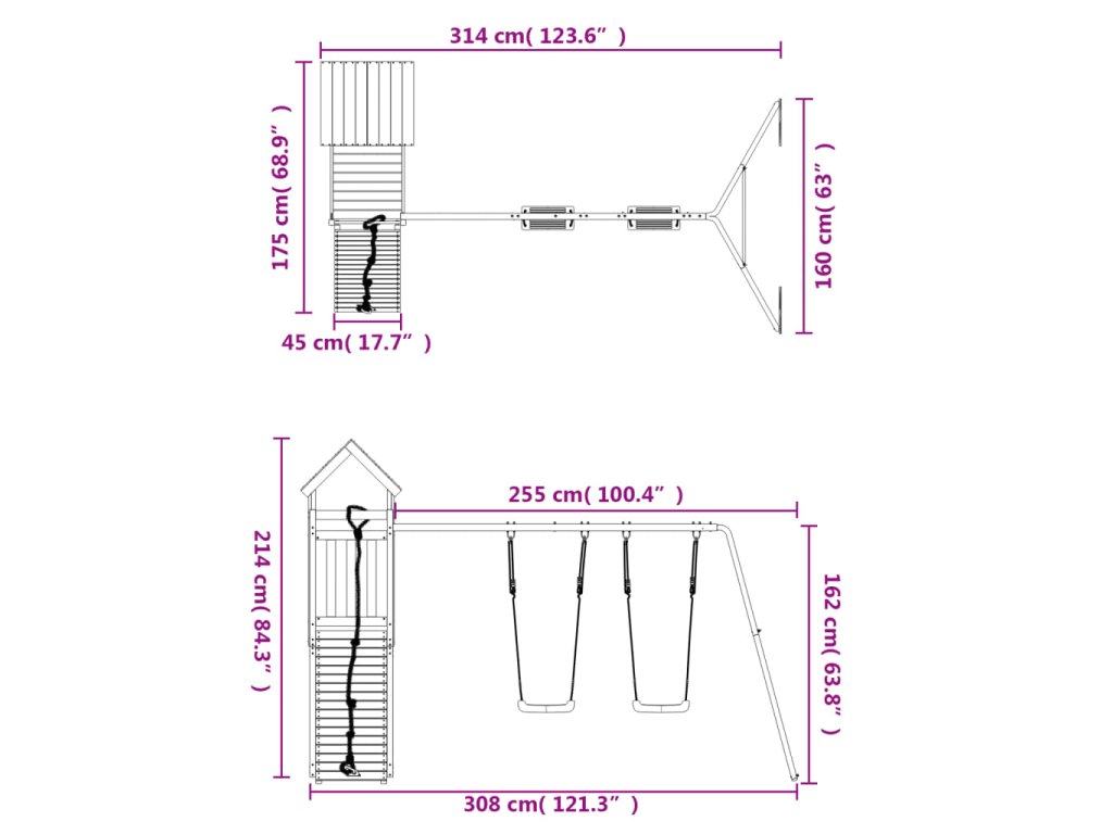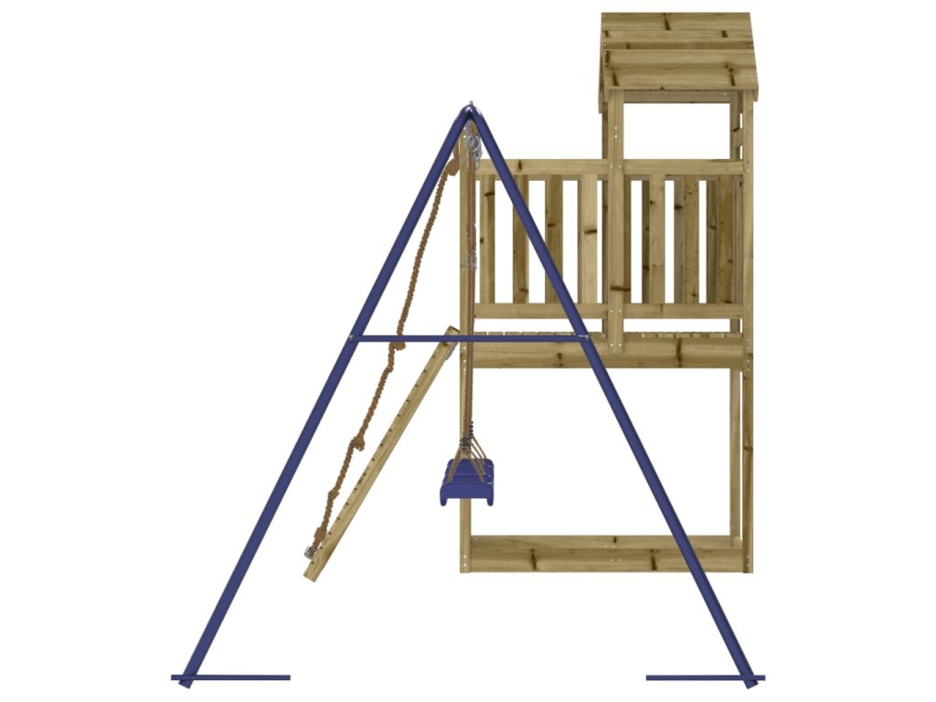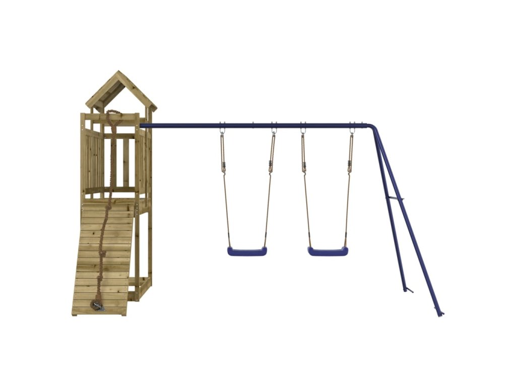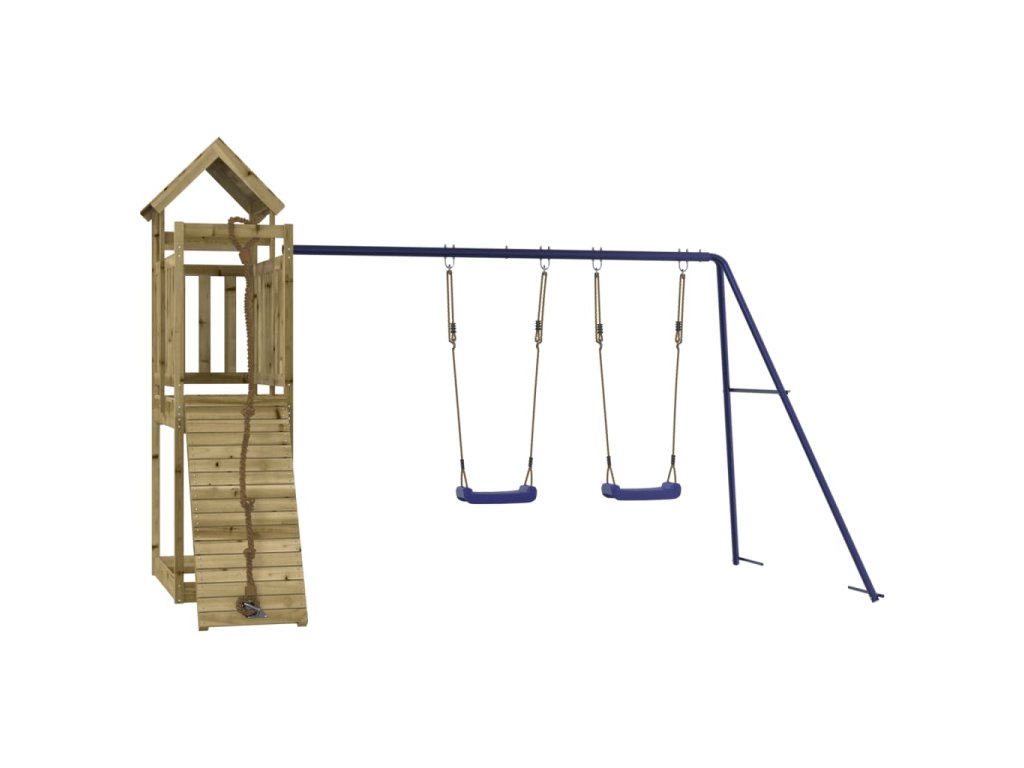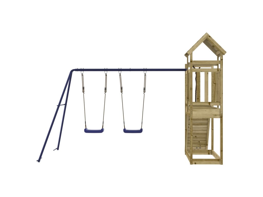 - Stabilní a robustní rám: Dřevěný rám zahradní věže zajišťuje mimořádnou pevnost a stabilitu. Nohy dětské houpačky ve tvaru písmene A navíc zajišťují potřebnou rovnováhu.