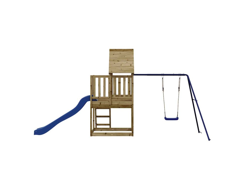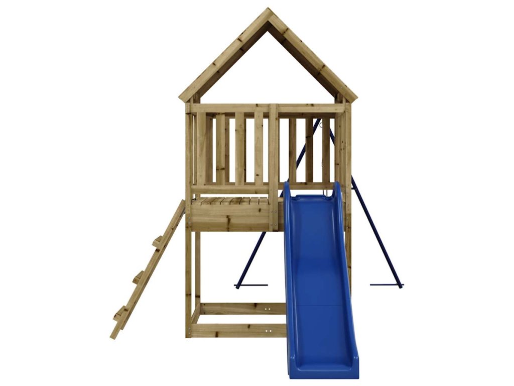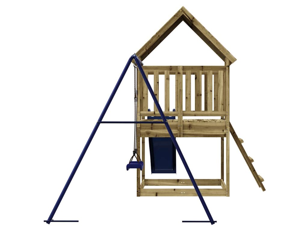 - Promyšlený design: Dřevěné zábradlí je navrženo tak, aby zajistilo bezpečnost dětí při jejich veselých hrách. Dřevěná střecha navíc poskytuje stín pro vaše děti v horkých letních dnech.