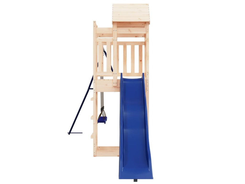 - Promyšlený design: Dřevěné zábradlí je navrženo tak, aby zajistilo bezpečnost dětí při jejich veselých hrách. Dřevěná střecha navíc poskytuje stín pro vaše děti v horkých letních dnech.