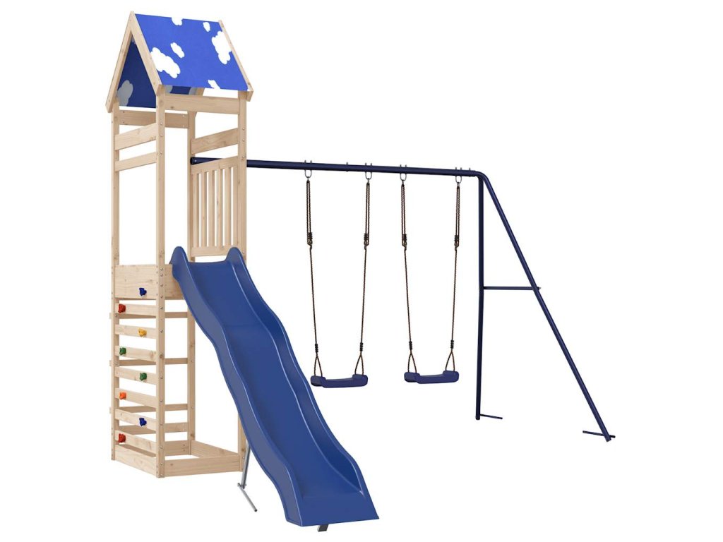- Multifunkční herní centrum: Věž má plošinu ve výšce 118 cm a vyniká zvlněnou skluzavkou, dvěma houpačkami, lezeckou stěnou s kameny a pískovištěm. Vaše děti si navíc mohou pozvat kamarády a užívat si zábavu společně.