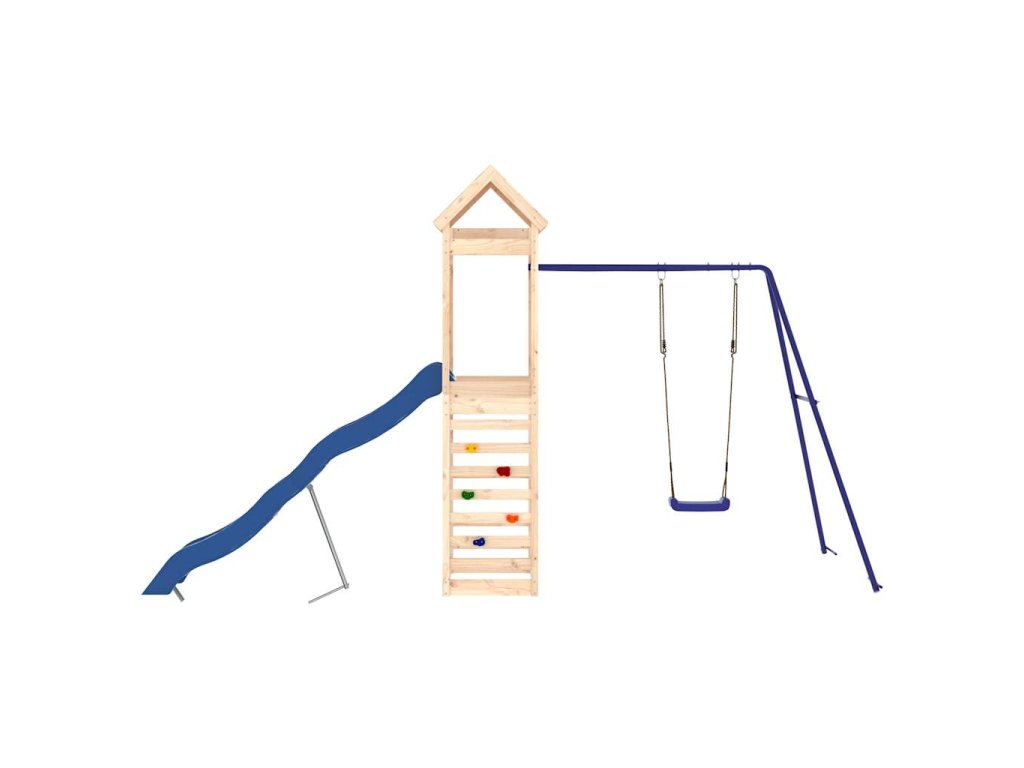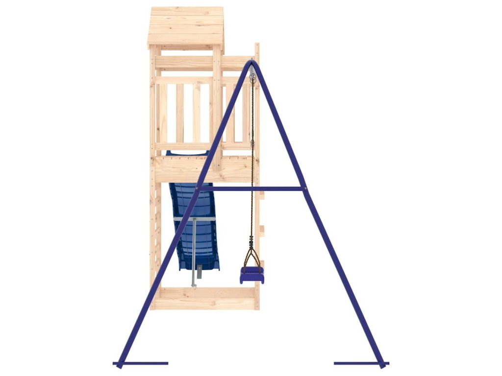 - Stabilní a robustní rám: Dřevěný rám dětského hřiště zajišťuje mimořádnou pevnost a stabilitu. Nohy dětské houpačky ve tvaru písmene A navíc zajišťují potřebnou rovnováhu.
