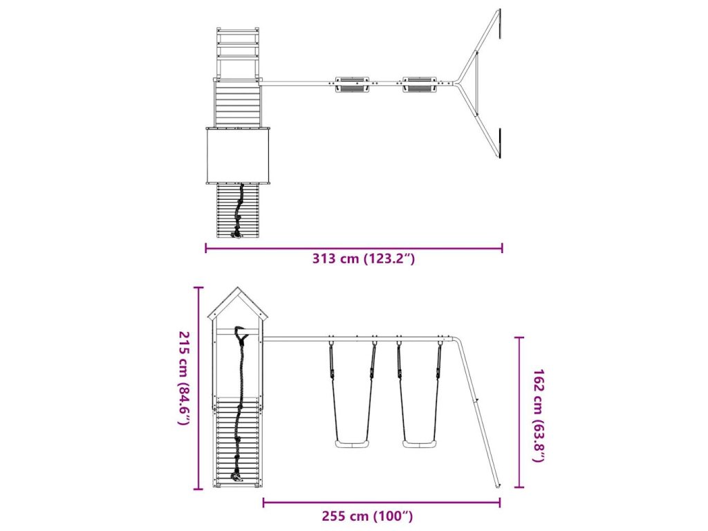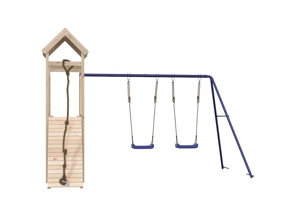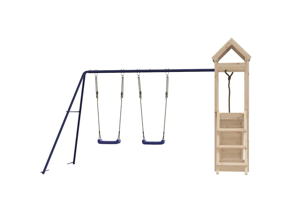- Stabilní dřevěný rám: Dřevěný rám zahradní hrací věže zajišťuje mimořádnou pevnost a stabilitu. Nohy dětské houpačky ve tvaru písmene A navíc zajišťují potřebnou rovnováhu.