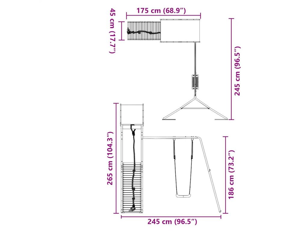 - Stabilní dřevěný rám: Dřevěný rám zahradní hrací věže zajišťuje mimořádnou pevnost a stabilitu. Nohy dětské houpačky ve tvaru písmene A navíc zajišťují potřebnou rovnováhu.