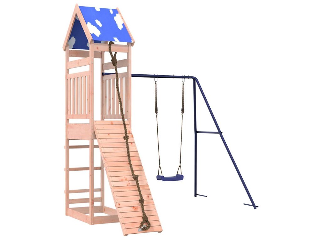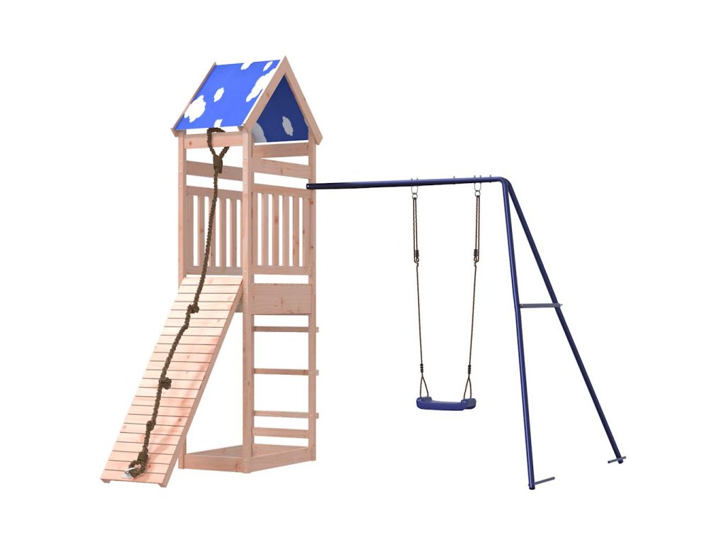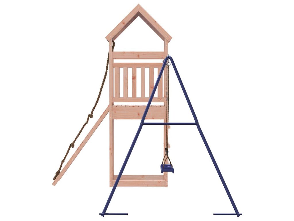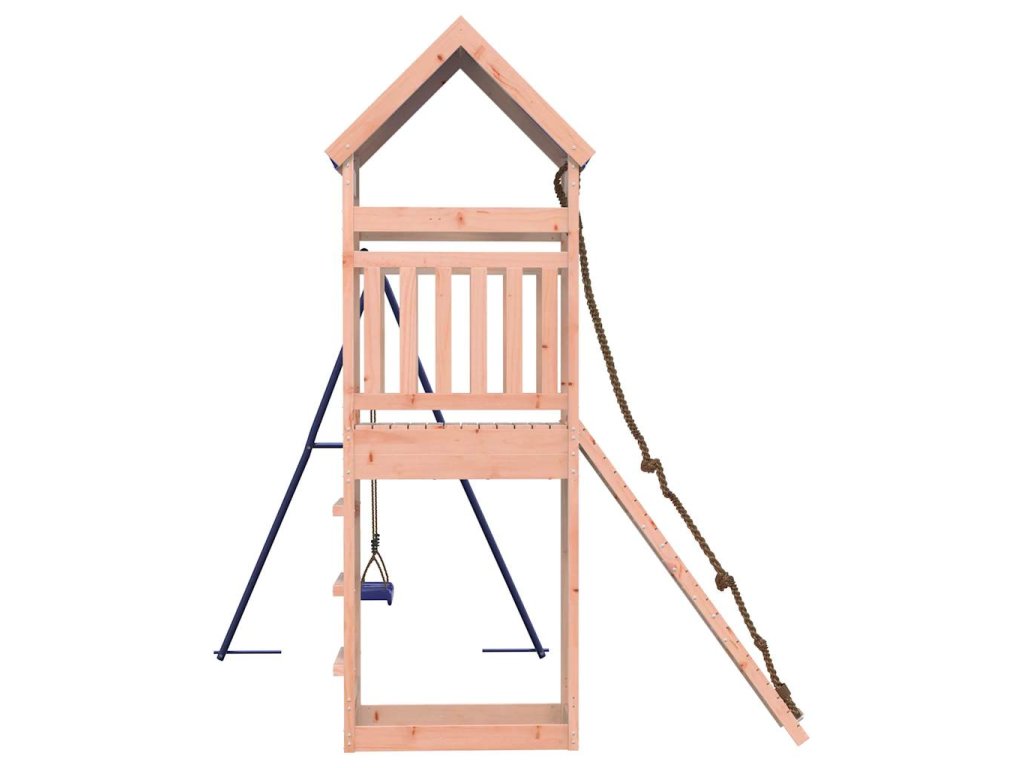 - Odolný materiál: Rám tohoto zahradního hřiště je vyroben z masivního dřeva douglasky. Douglaska je známá svou pevností a dlouhou životností. Jeho sytá červenohnědá barva a jedinečná kresba dřeva působí hřejivým a přírodním dojmem. Vyznačuje se dobrou stabilitou a odolností vůči povětrnostním vlivům, takže je ideální pro výrobu interiérového i venkovního nábytku.
