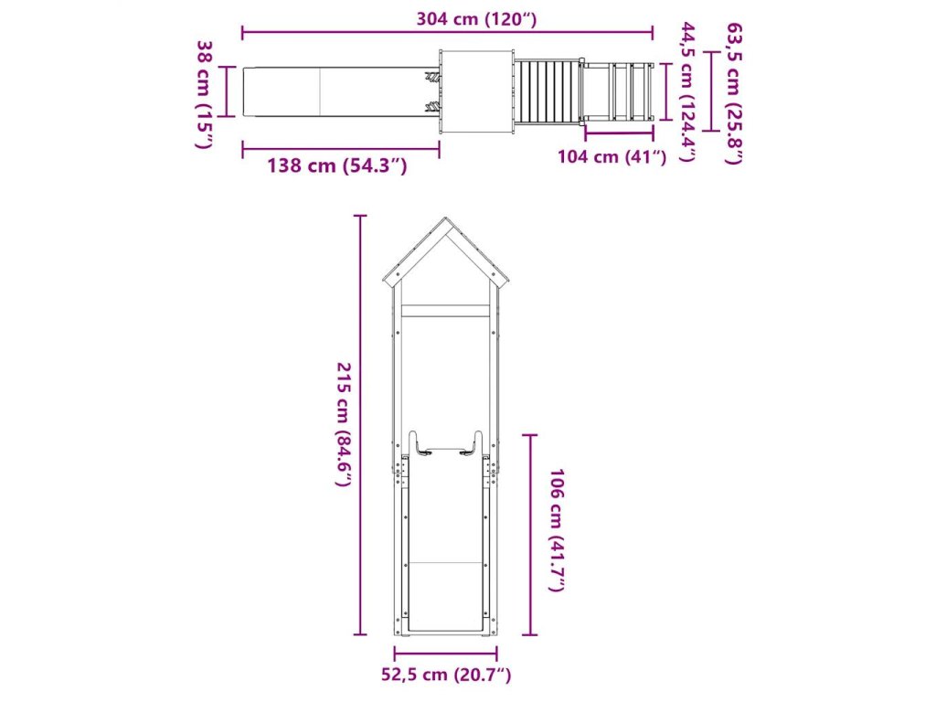 - Stabilní dřevěný rám: Dřevěný rám zahradní hrací věže zajišťuje mimořádnou pevnost a stabilitu.