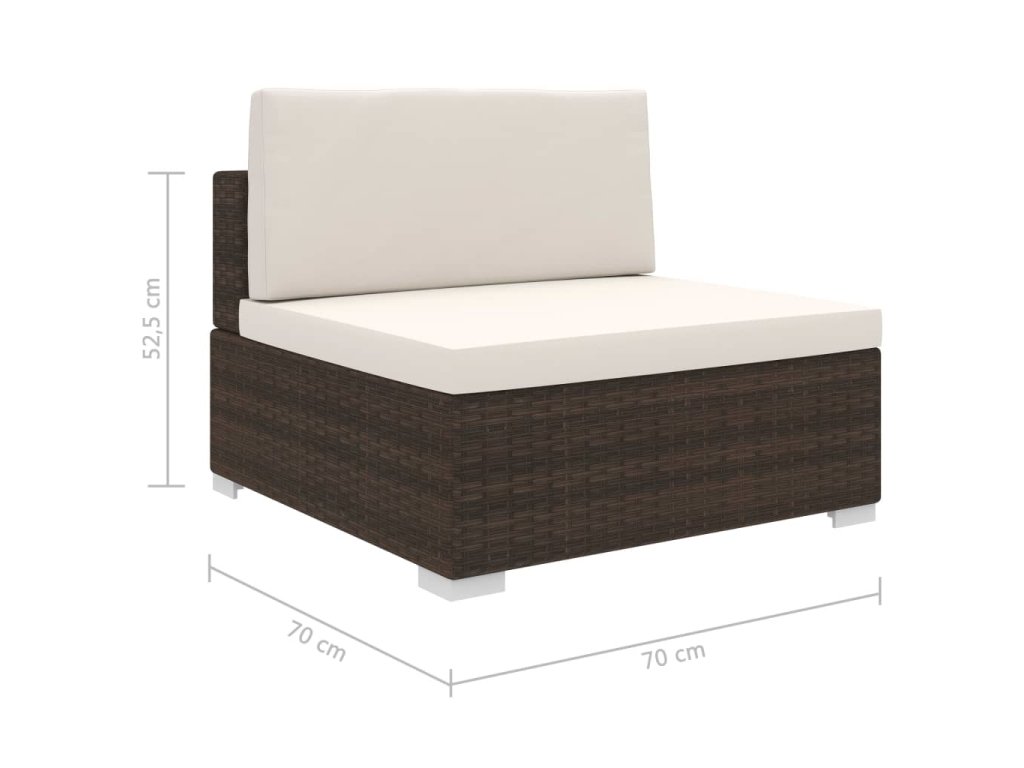Tato středová sedačka je zhotovená z klimaticky odolného a voděvzdorného PE ratanu, takže se snadno čistí, je odolná vůči opotřebení a je vhodná pro každodenní použití. Sedačka je opatřená robustním ocelovým rámem s práškovým lakováním, který je vysoce odolný. Má rovněž nízkou hmotnost a je modulární, a tudíž ji můžete flexibilně a snadno přemisťovat dle momentálních potřeb. Pohodlné podušky s vysokým polstrováním jsou snímatelné. Tuto dílčí sedačku je možné kombinovat s dalšími rohovými díly a podnožkami, které najdete v rozbalovacím menu. Můžete si tak vytvořit vlastní zahradní posezení podle vašich představ! V 9 posledních obrázcích najdete příklady možných kombinací.