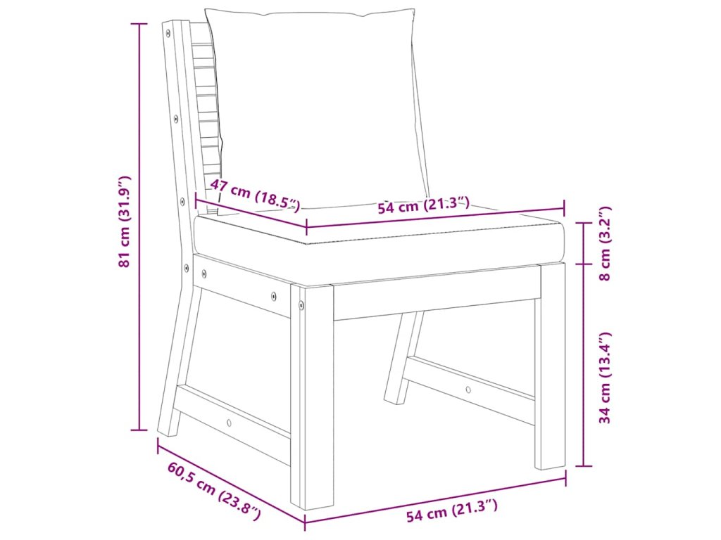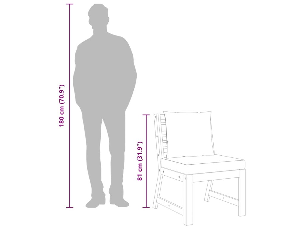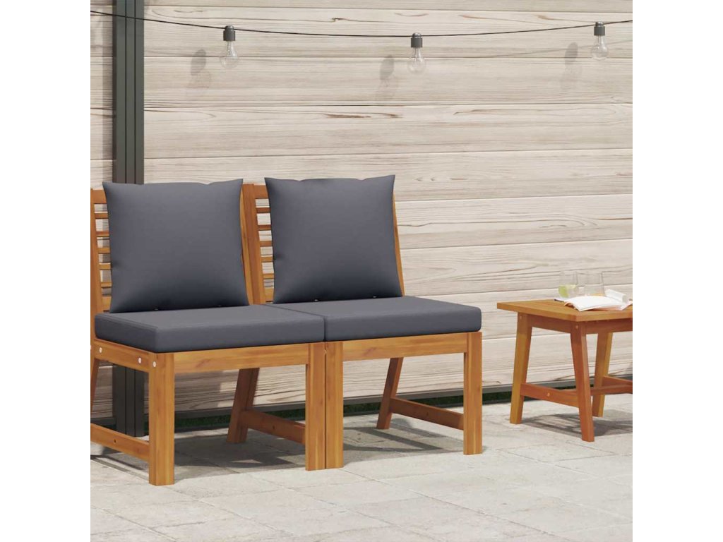Středová pohovka je vyrobená z extra odolného masivního akáciového dřeva a hodí se na terasu, zahradu, k bazénu a další místa. Akáciové dřevo je tropické tvrdé dřevo, které je odolné vůči povětrnostním vlivům a má dlouhou životnost. Hustě polstrované podušky na sedák a opěradlo vám poskytnou extra pohodlí při sezení a oporu vašim zádům.