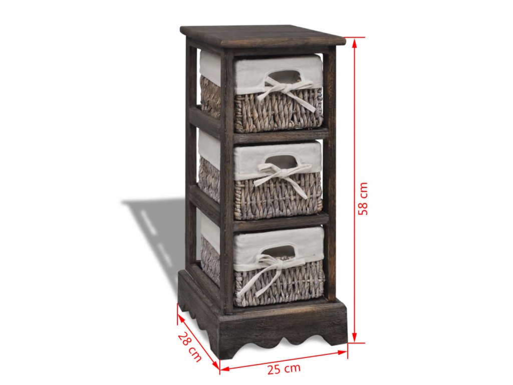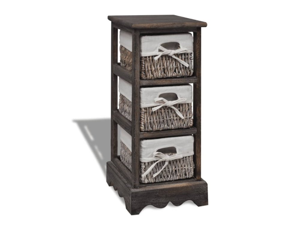 Tato odolná dřevěná komoda, která je dodávána se 3 proutěnými košíky, vám poskytne spoustu místa pro uložení vašich cenností a vnese do vašeho pokoje styl. Náš dřevěný regál bude jistě jedním z vašich oblíbených kusů nábytku v jakémkoliv pokoji.