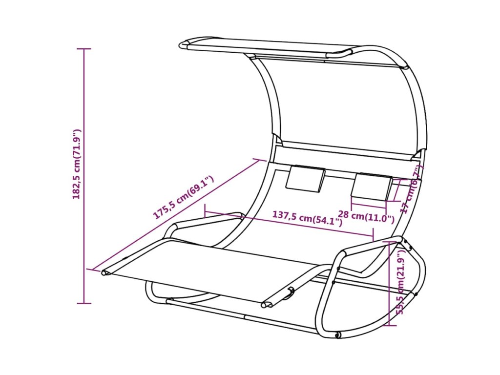 - Pevný rám: Dvojité lehátko má ocelový rám s práškovým nástřikem, který zajišťuje pevnost a stabilitu.