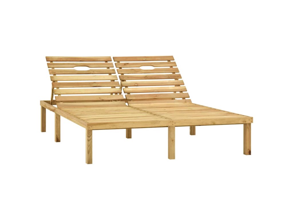 Dvojité zahradní lehátko je zhotovené z impregnované borovice, takže výborně odolává klimatickým vlivům, má dlouhou životnost a dá se snadno čistit navlhčeným hadříkem. Výšku opěradla si můžete nastavit dle vlastní potřeby, abyste se mohli co nejpohodlněji uvelebit. Poduška, která je součástí balení, představuje víc než jen praktický doplněk – plní také dekorativní funkci.