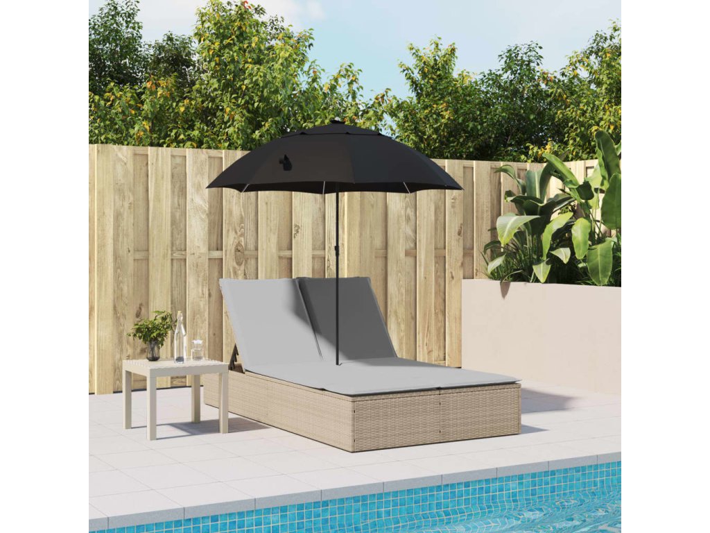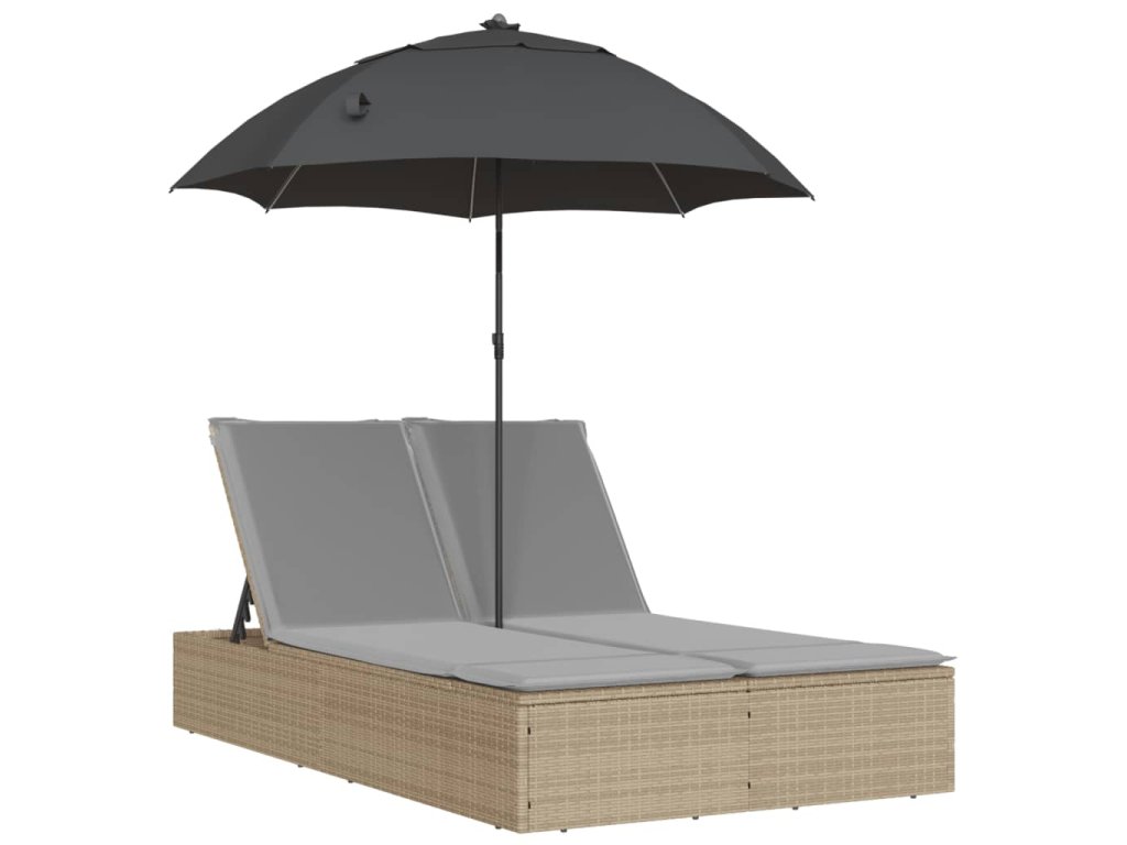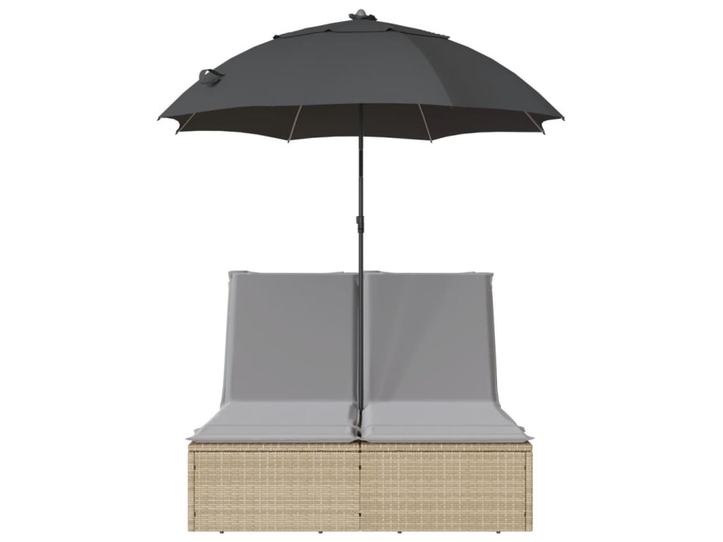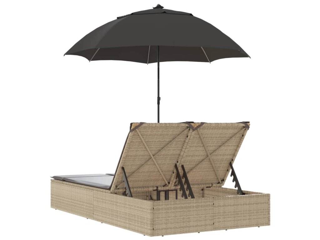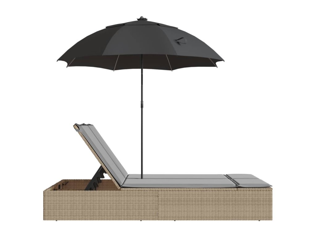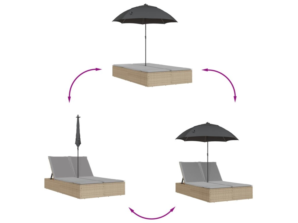 - Praktický slunečník: Lehátko je vybaveno slunečníkem s naklápěcím mechanismem, který umožňuje snadné nastavení stříšky pro optimální zastínění a ochranu před sluncem.