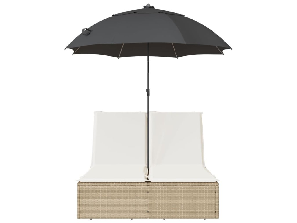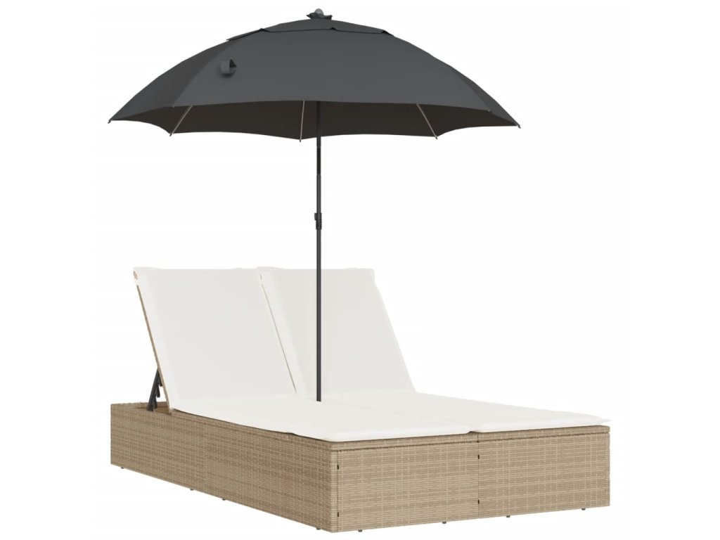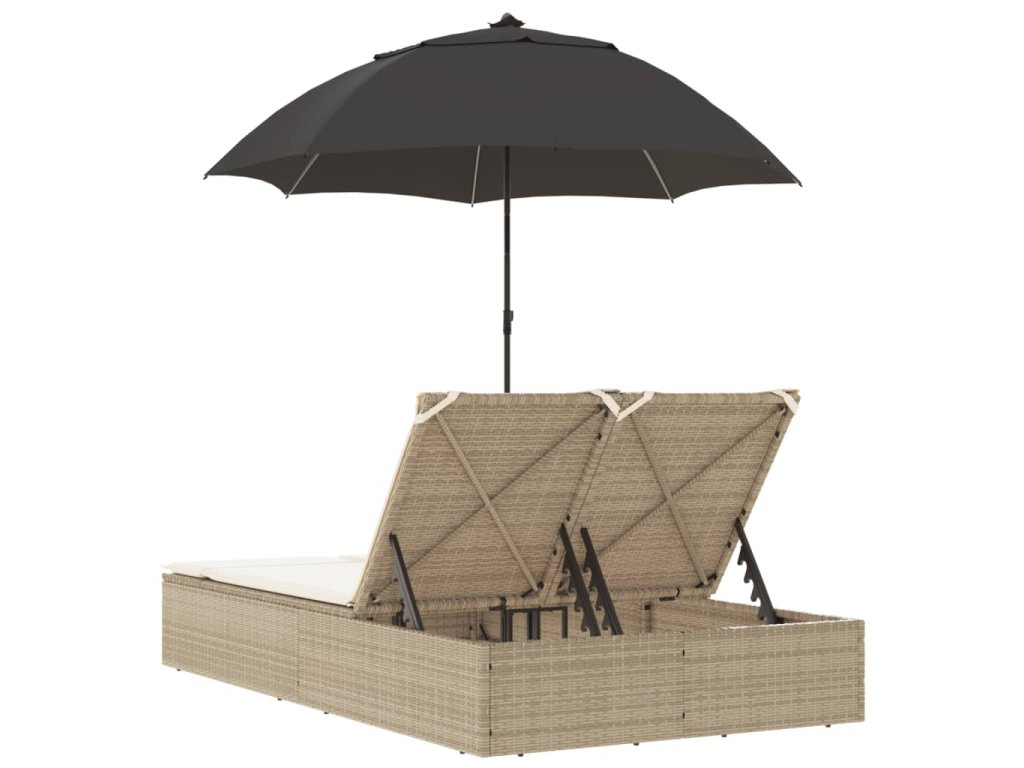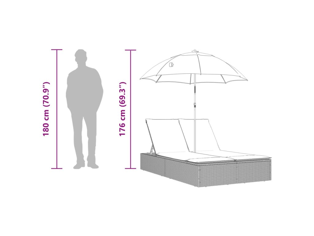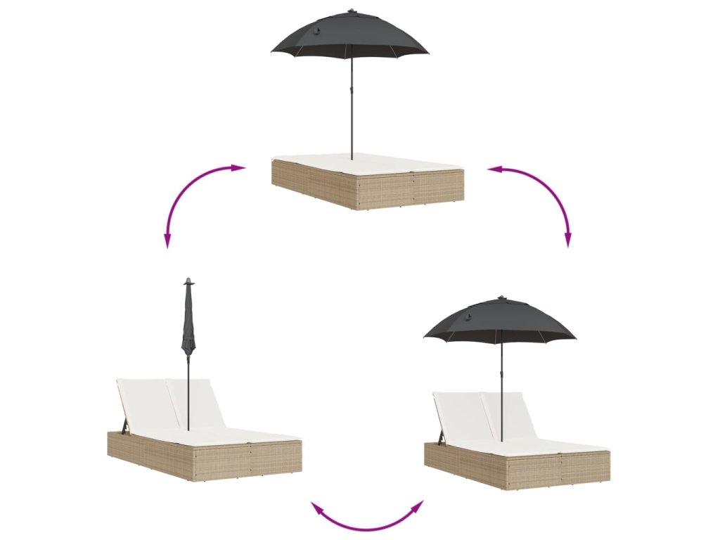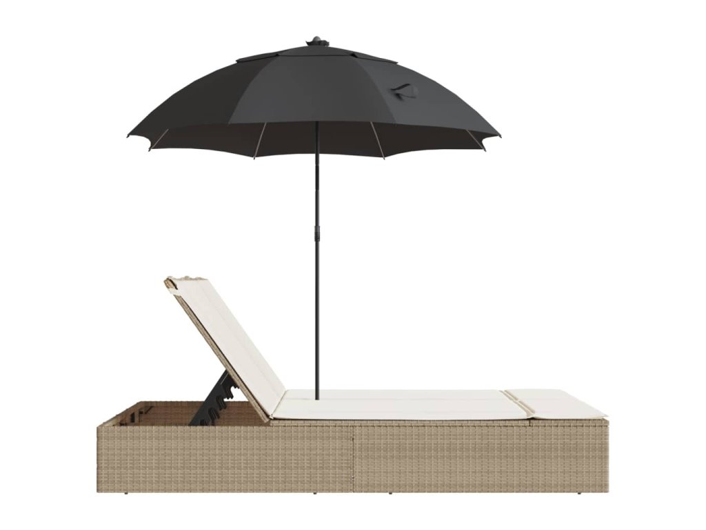 - Praktický slunečník: Lehátko je vybaveno slunečníkem s naklápěcím mechanismem, který umožňuje snadné nastavení stříšky pro optimální zastínění a ochranu před sluncem.