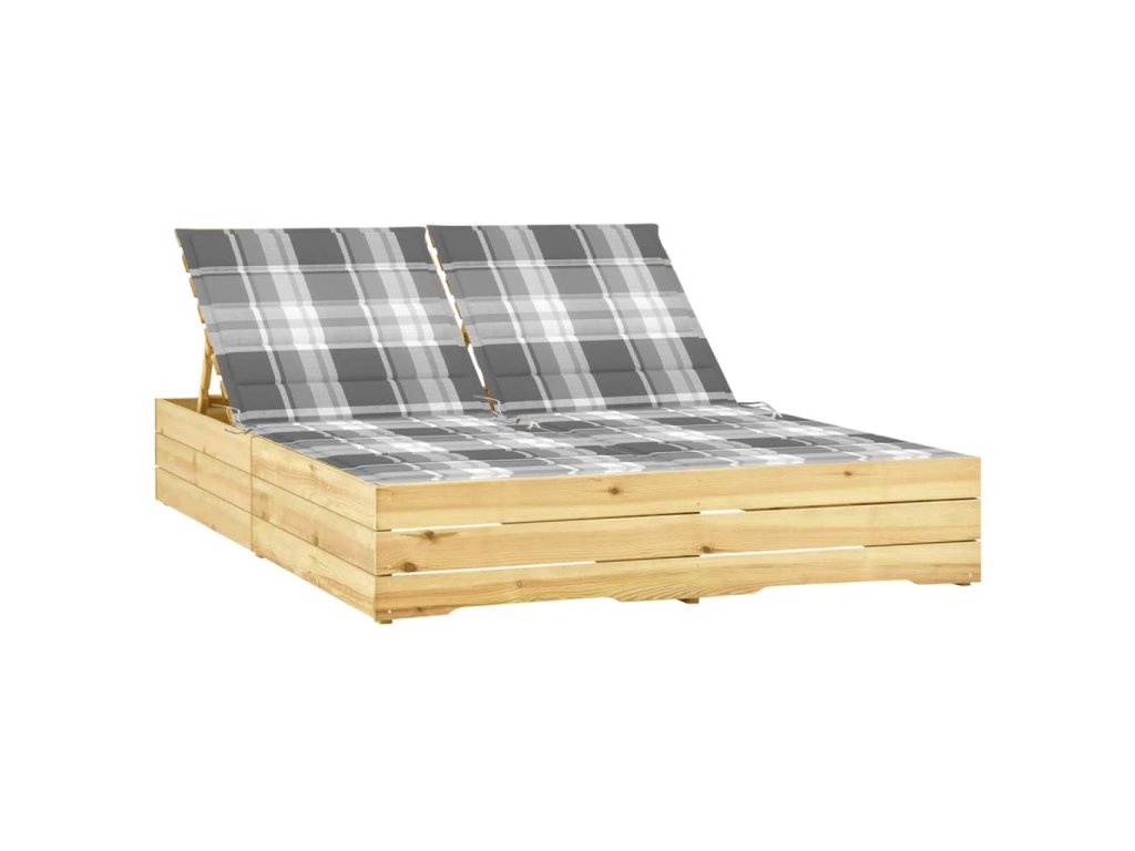 Dvojité zahradní lehátko je zhotovené z impregnované borovice, takže výborně odolává klimatickým vlivům, má dlouhou životnost a dá se snadno čistit navlhčeným hadříkem. Výšku opěradla si můžete nastavit dle vlastní potřeby, abyste se mohli co nejpohodlněji uvelebit. Poduška, která je součástí balení, představuje víc než jen praktický doplněk – plní také dekorativní funkci.