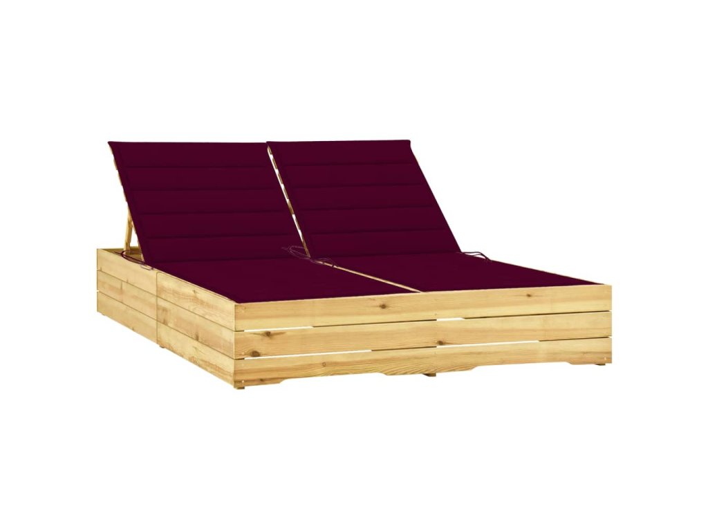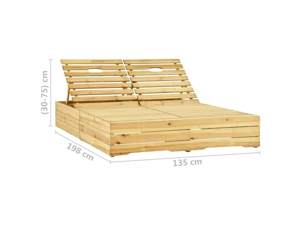 Dvojité zahradní lehátko je zhotovené z impregnované borovice, takže výborně odolává klimatickým vlivům, má dlouhou životnost a dá se snadno čistit navlhčeným hadříkem. Výšku opěradla si můžete nastavit dle vlastní potřeby, abyste se mohli co nejpohodlněji uvelebit. Poduška, která je součástí balení, představuje víc než jen praktický doplněk – plní také dekorativní funkci.