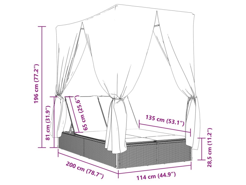 - Rozměry se střechou a závěsy: 200 x 114 x 196 cm (Š x H x V)