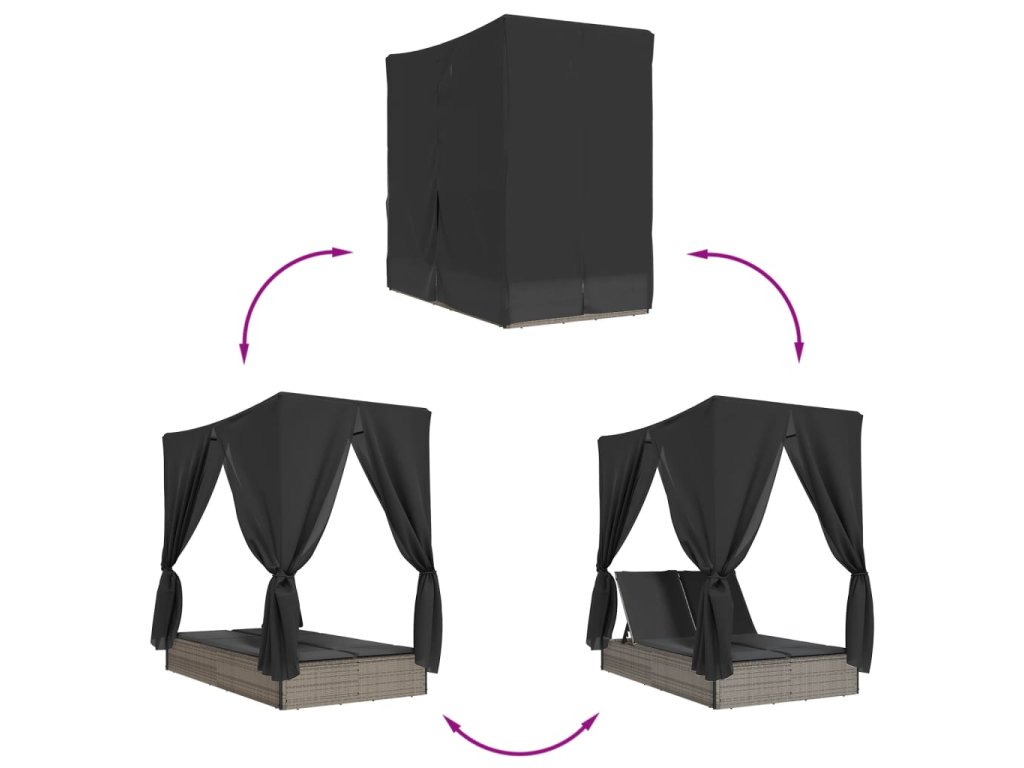 - Praktická střecha a závěsy: Díky střeše a závěsům můžete vytvořit chladné a příjemné venkovní prostředí po celý den.