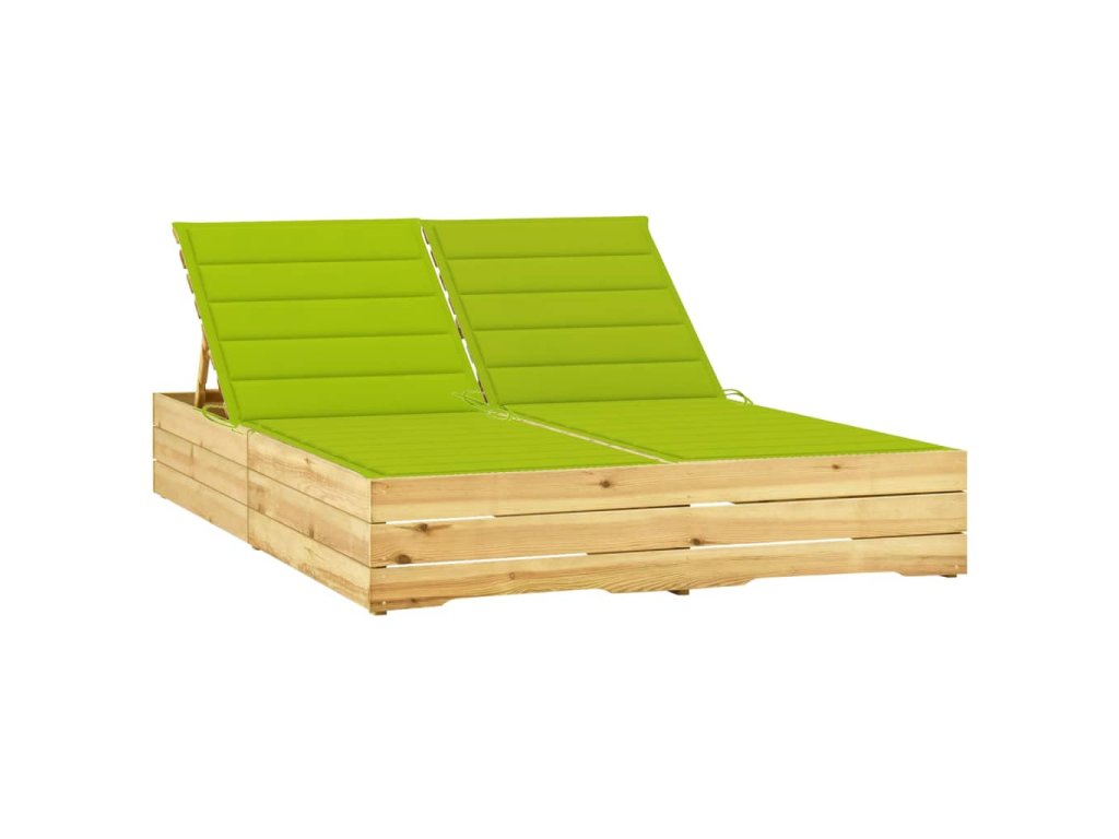 Dvojité zahradní lehátko je zhotovené z impregnované borovice, takže výborně odolává klimatickým vlivům, má dlouhou životnost a dá se snadno čistit navlhčeným hadříkem. Výšku opěradla si můžete nastavit dle vlastní potřeby, abyste se mohli co nejpohodlněji uvelebit. Poduška, která je součástí balení, představuje víc než jen praktický doplněk – plní také dekorativní funkci.
