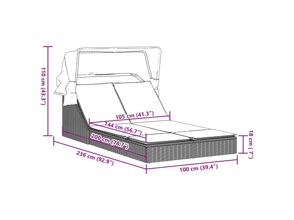 - Rozměry bez stříšky: 105 x 200 x 50/52/64 cm (Š x H x V)
